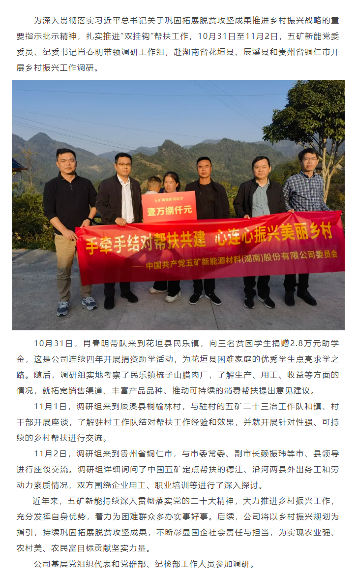 五矿新能党委深入多地考察调研,共谋乡村振兴工作