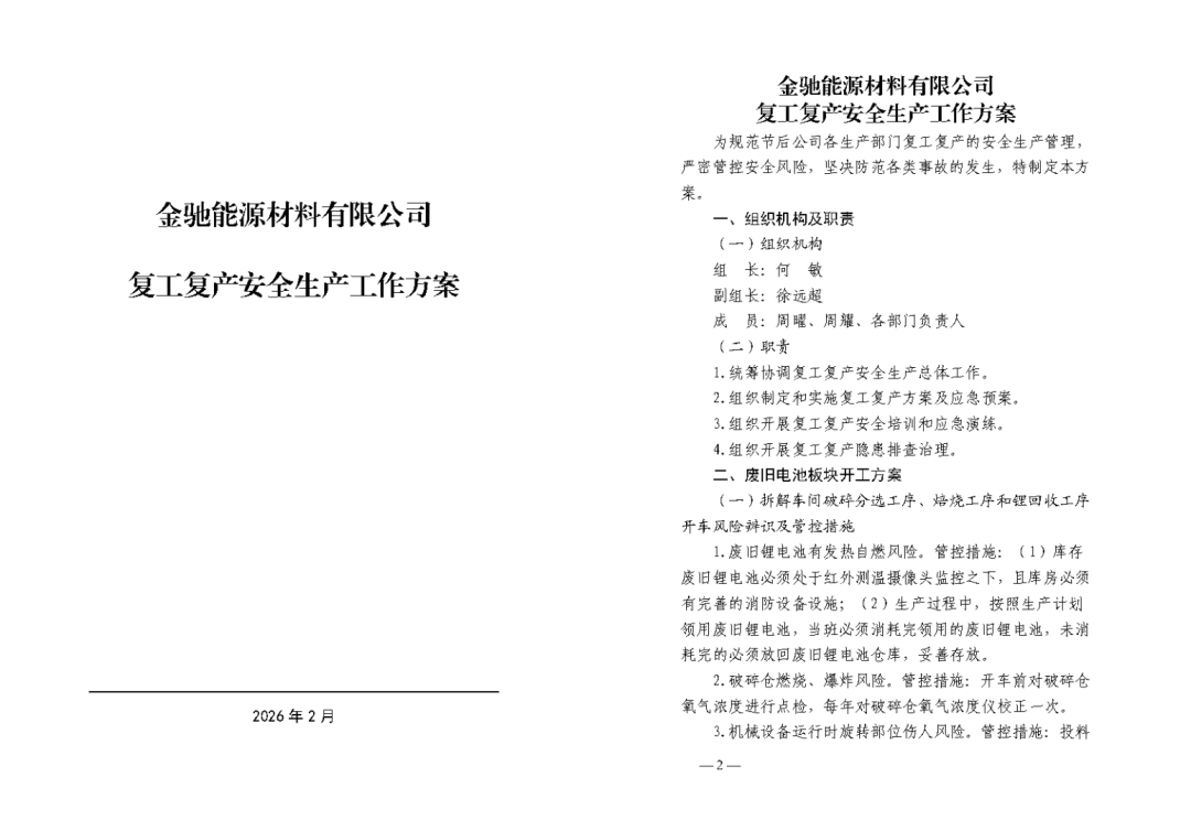 为切实把好节后复工复产安全关,公司指导督促三家子公司制定“2026年复工复产安全工作方案”,重点部署“五个一”要求、设备设施启用安全确认及特殊作业等关键环节,以清单化任务推动安全责任落地生根。